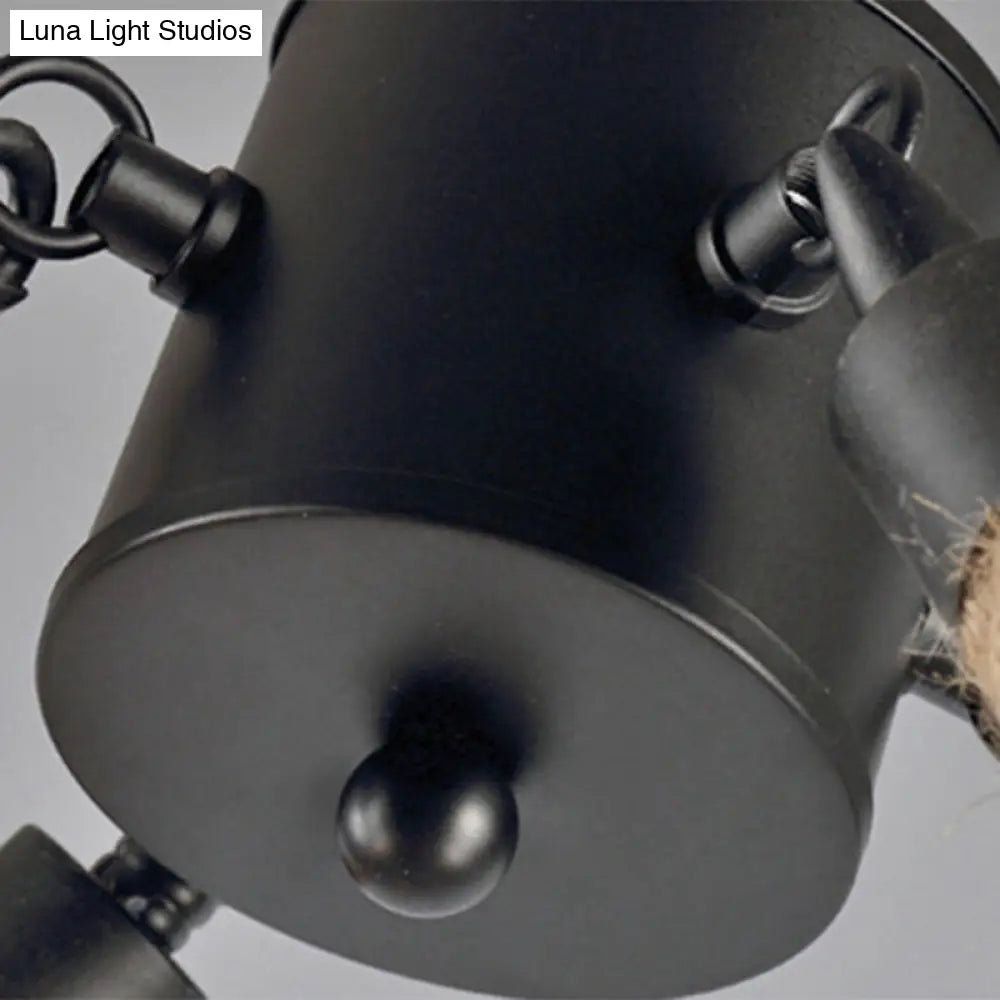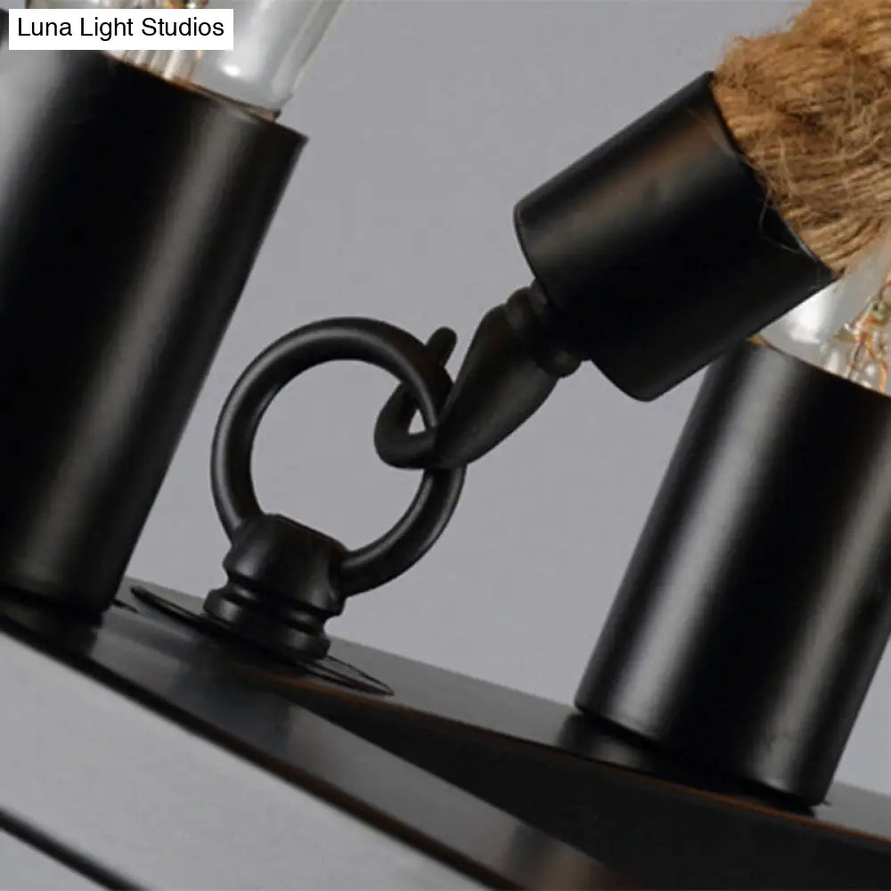 Iron Industrial Chandelier with 16 Rectangular Lights and Hemp Rope in Black for Cafes