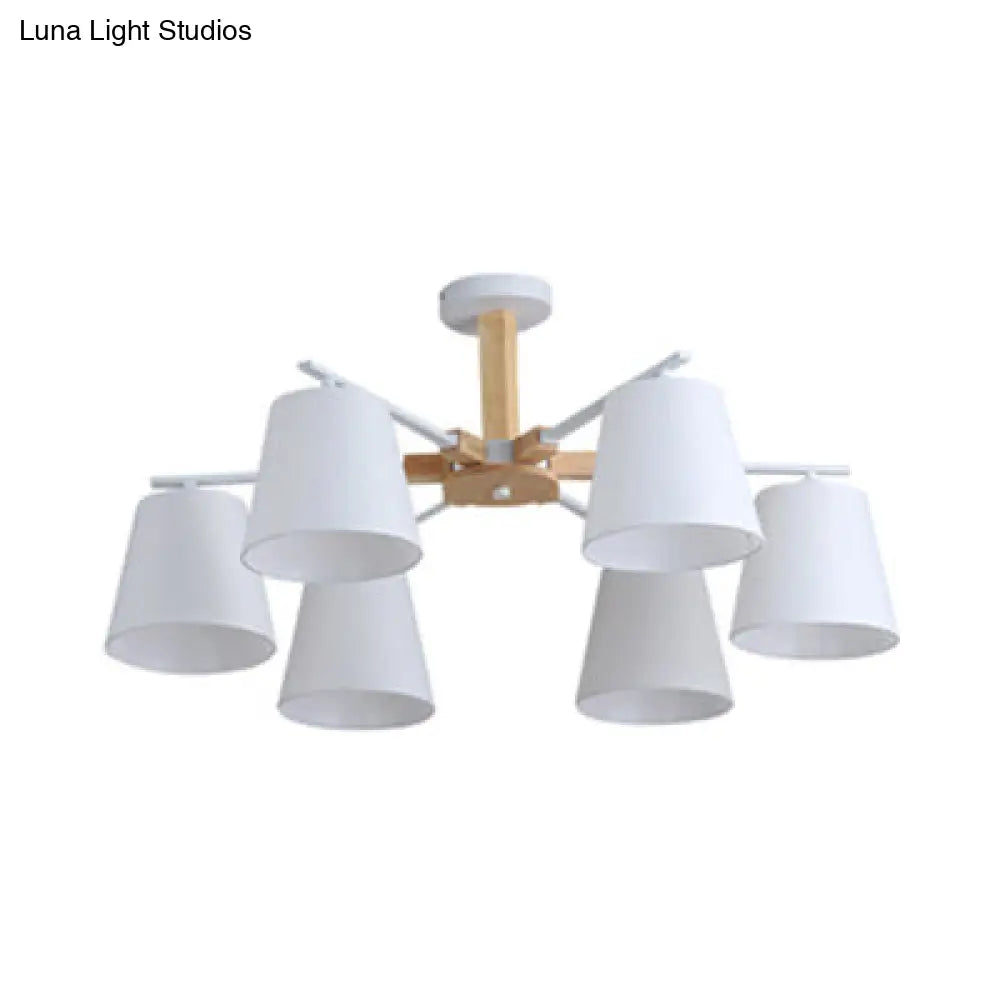 Modern Wood Ceiling Pendant with Tapered Fabric Shade - Available with 3/6 Heads for Living Room Chandelier Lighting