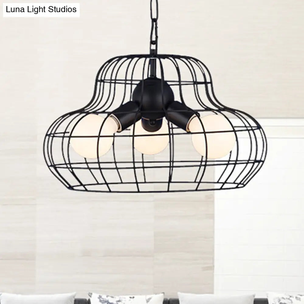 Vintage Metal Black Chandelier Pendant Lamp - 3 Lights for Living Room Lighting