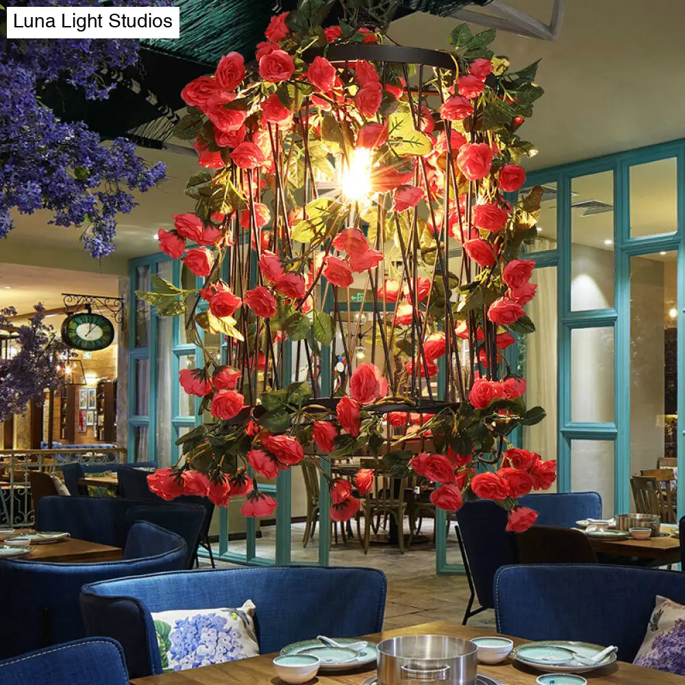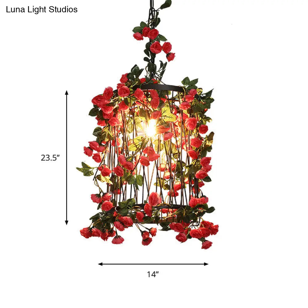 Black Metal Cylinder Pendant Light - Farmhouse 1-Head Restaurant Flower Down Lighting