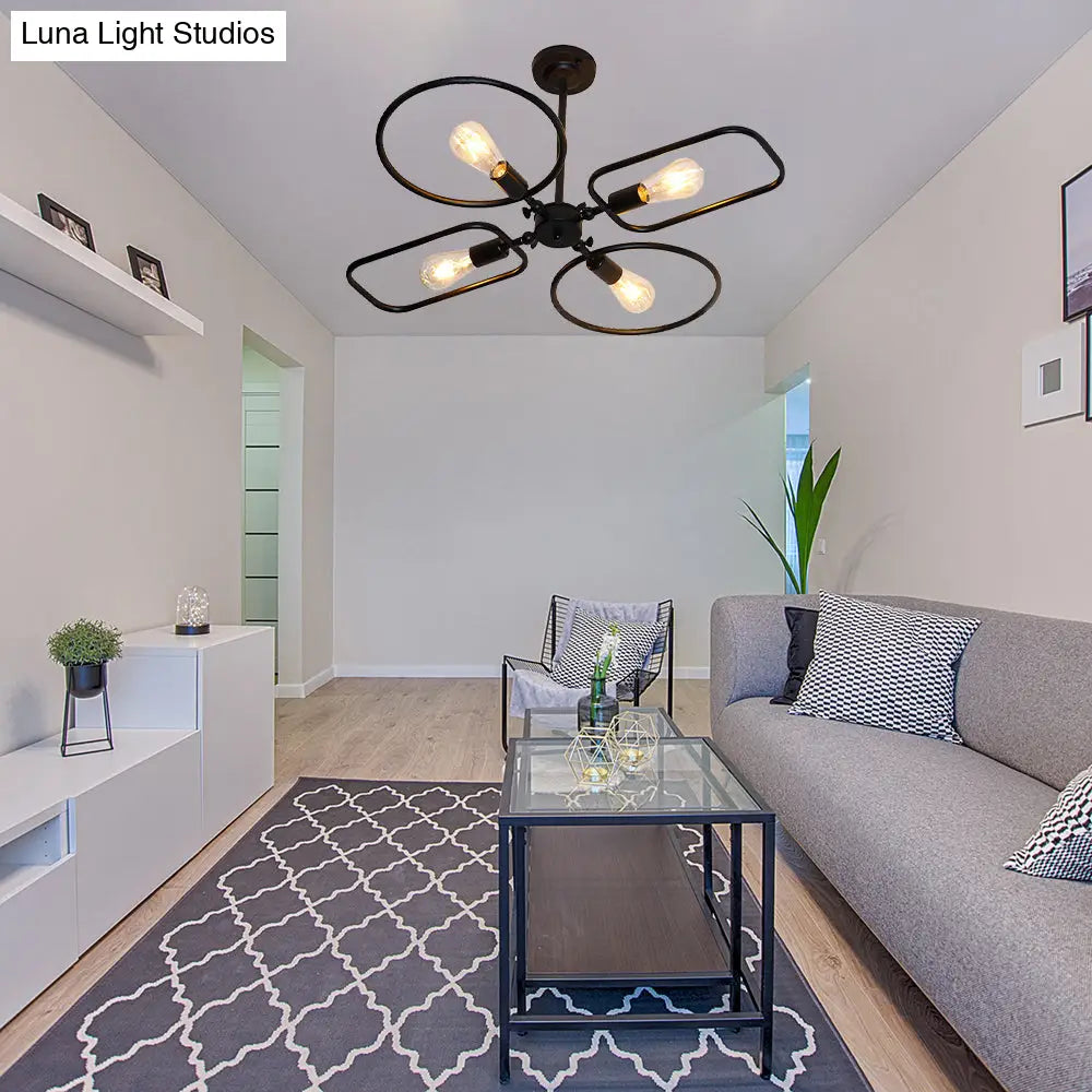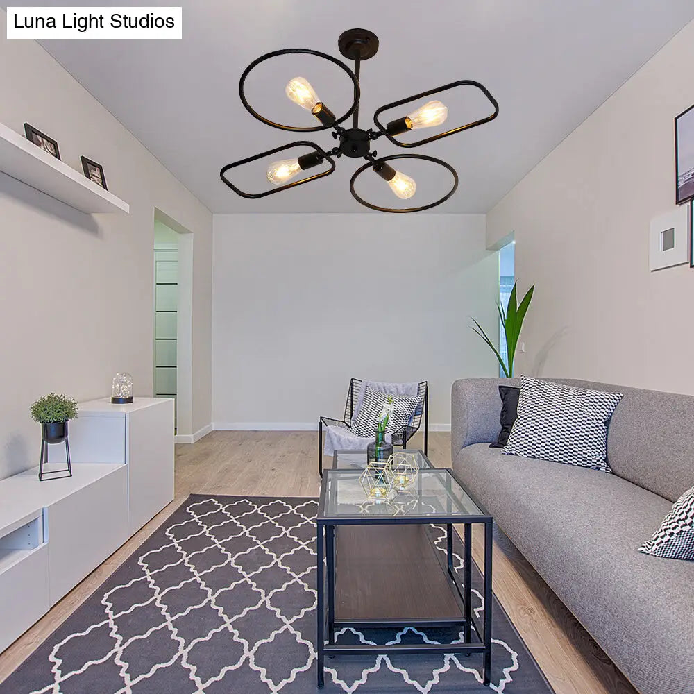 Retro Style Metal Geometric Chandelier Pendant Light - 4-Light Indoor Hanging Fixture in Black