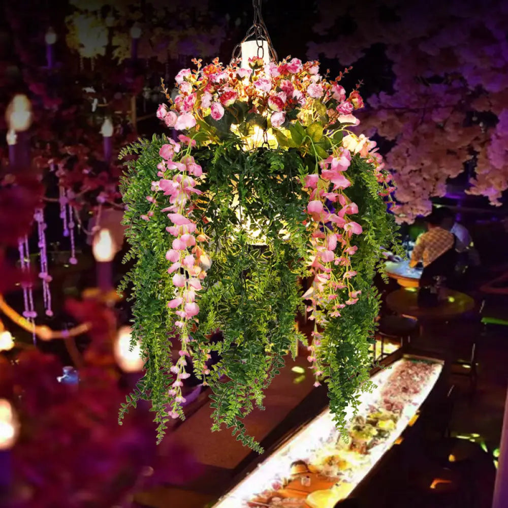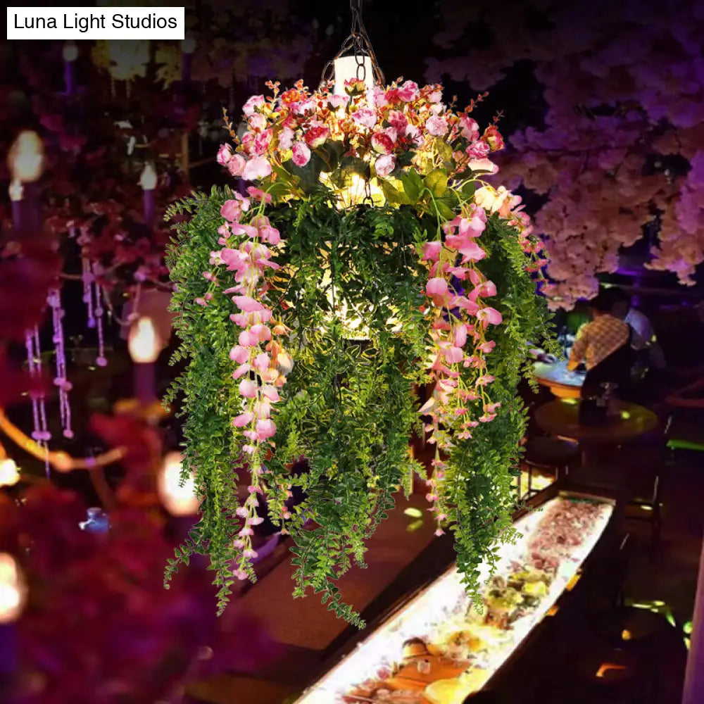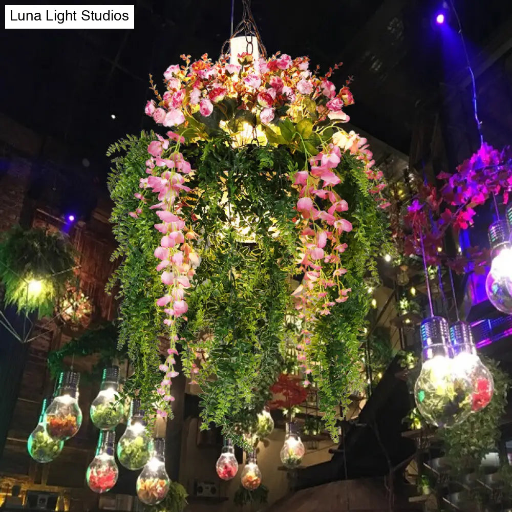 Green Metal Hanging Chandelier with 4 Industrial Pendant Lights - Unique Plant Decoration