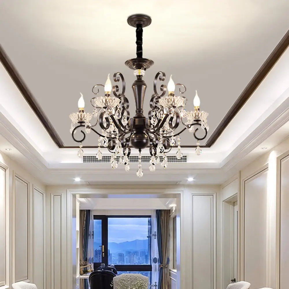 Black Chandelier with Crystal Strands - Metallic Candle Hanging Lamp Kit (6/8 Bulbs), Minimalistic Design