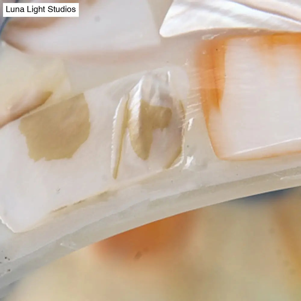 Mediterranean Stained Glass Pendant Chandelier - Beige Mosaic Lamp for Living Room (3/5/9 Lights)