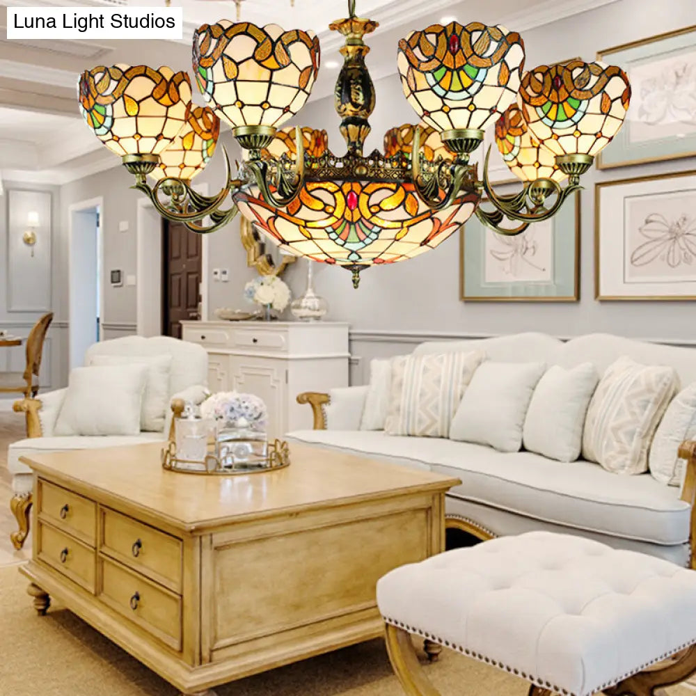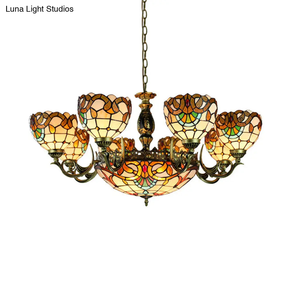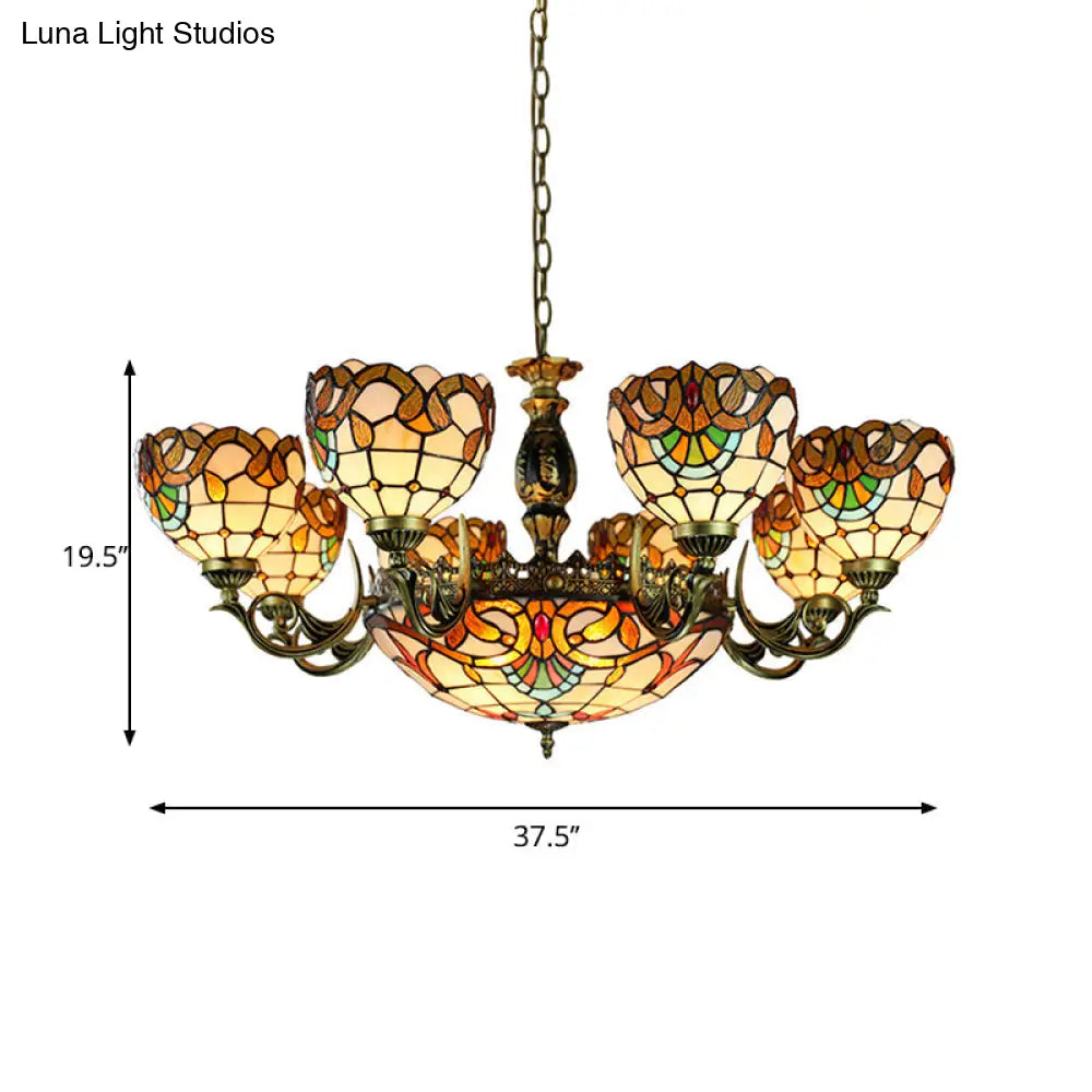 Height-Adjustable Stained Glass Multi-Light Chandelier with Metal Chain