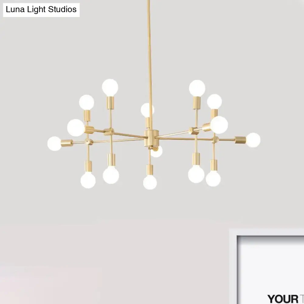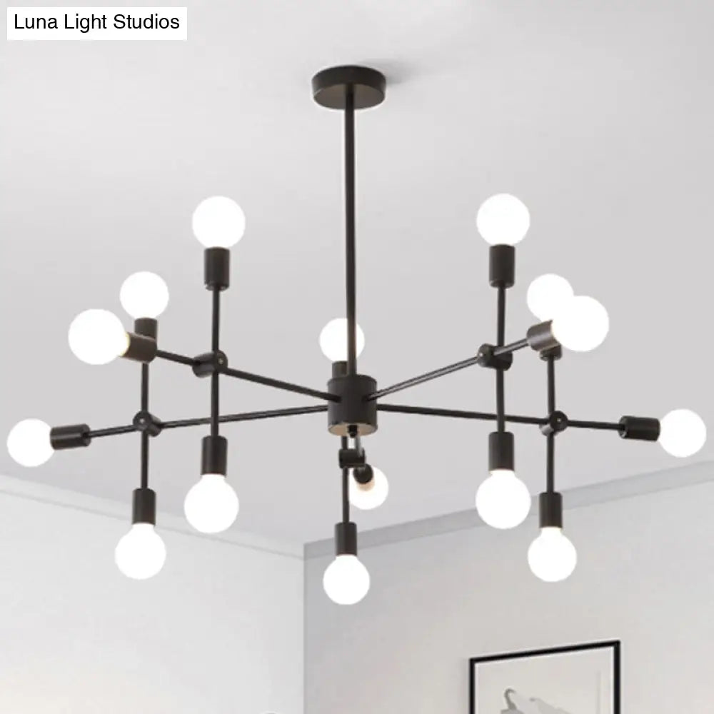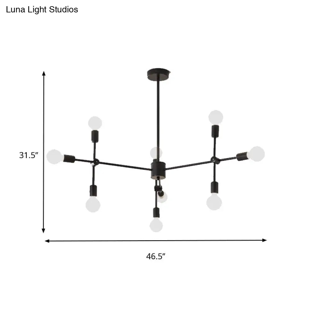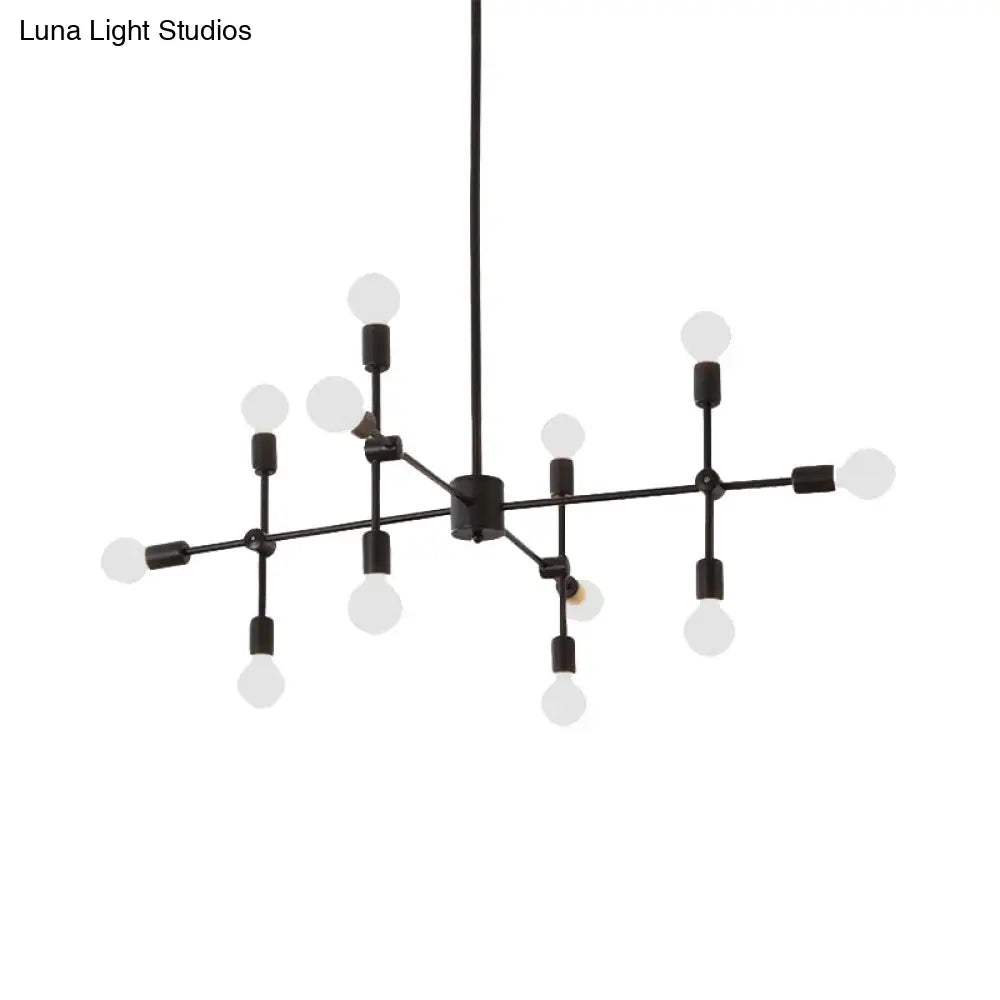 Industrial Metal Bulb Chandelier: Open Design, 9/12 Lights, Black/Brass Pendant Lighting for Dining Room