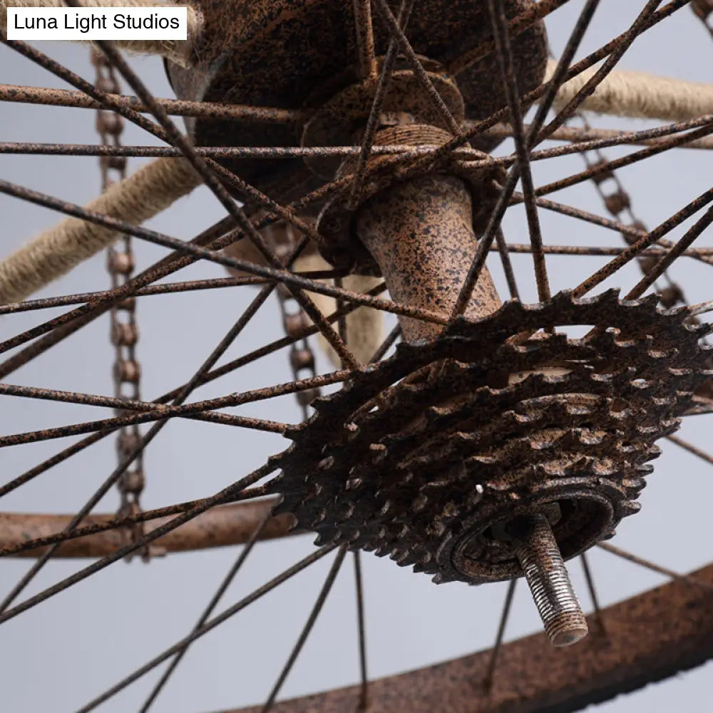 Rustic Wrought Iron Wheel Chandelier - Farmhouse Style Indoor Ceiling Lamp with 6 Lights, Candle, and Chain