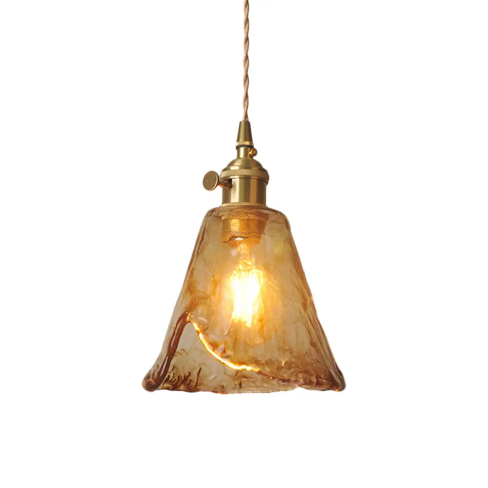 Brass Cone/Cube Coffee Cloud Glass Single-Bulb Pendant Light for Farmhouse Décor