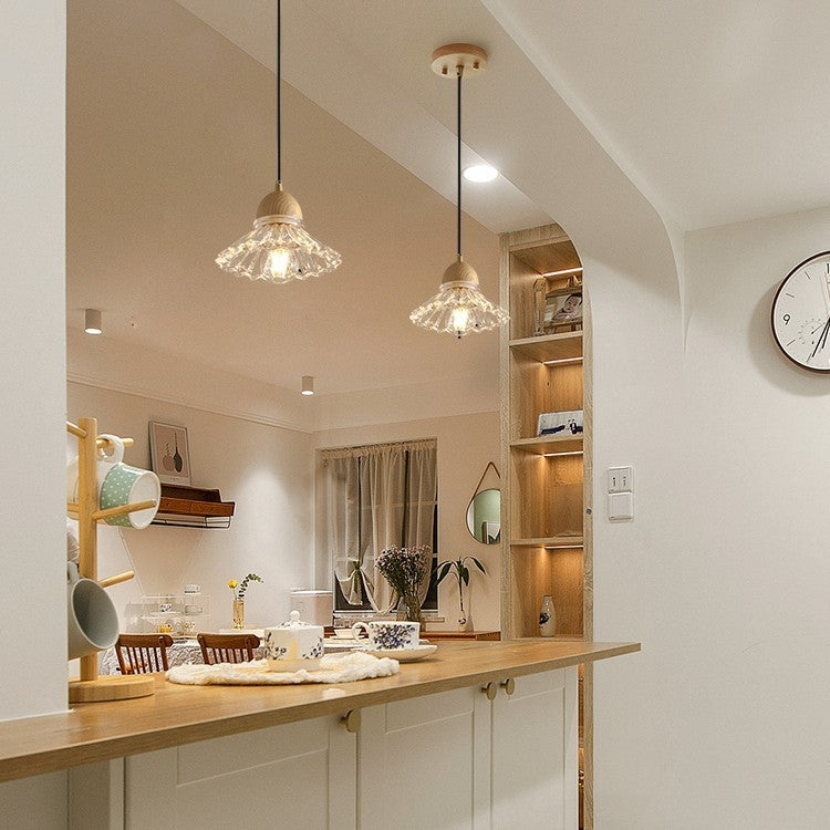 Solid Wood Glass Three Head Restaurant Nordic Modern Minimalist Chandelier