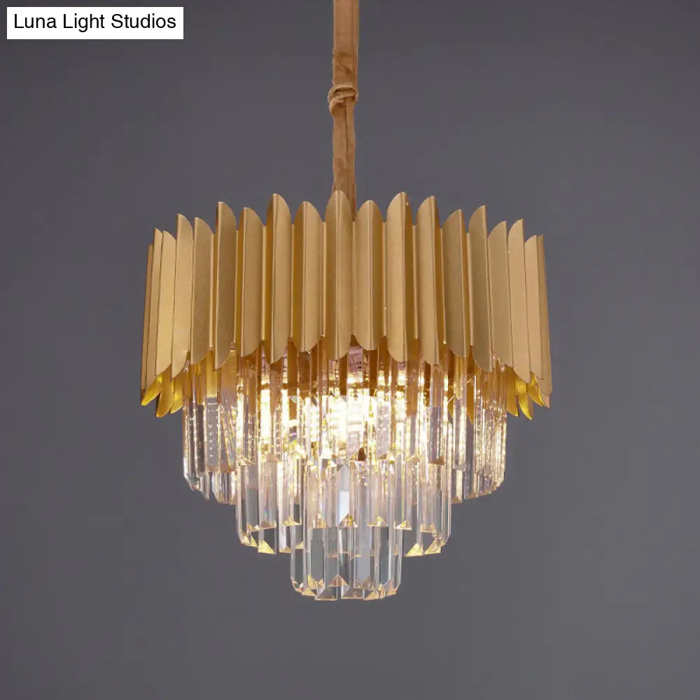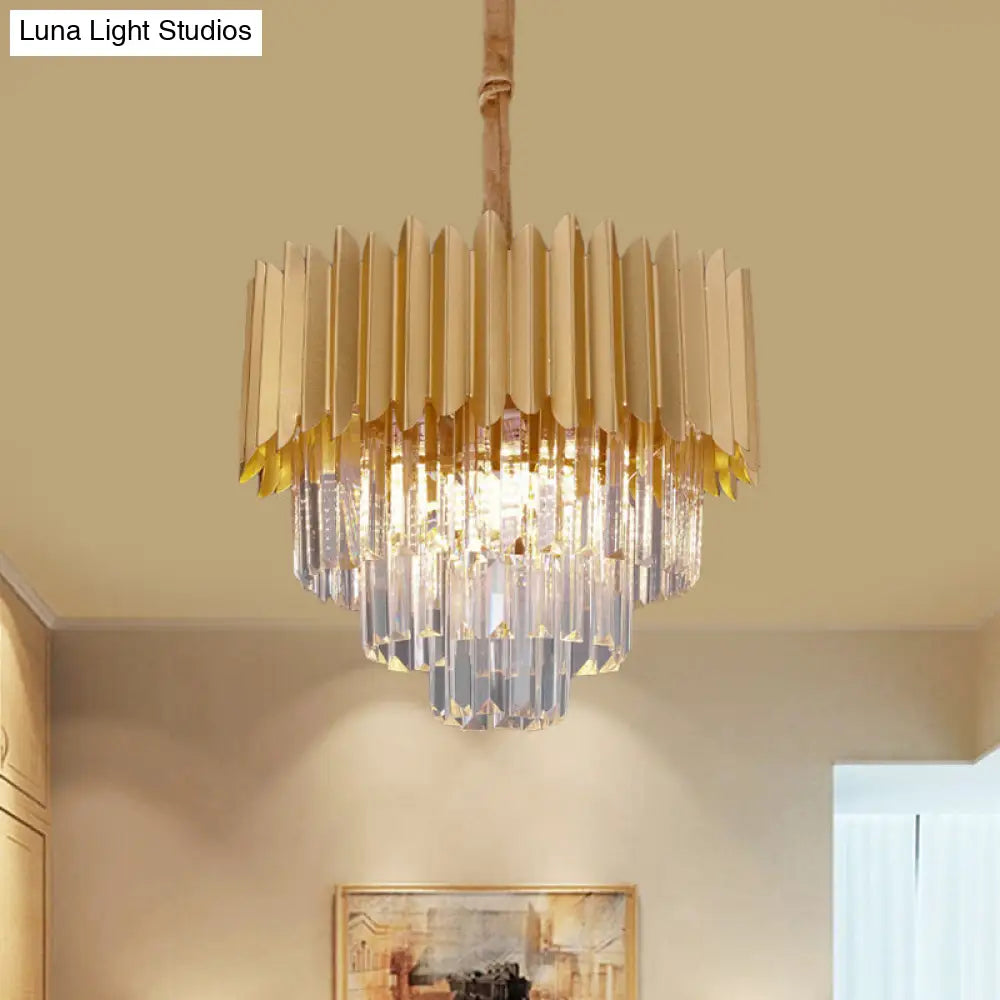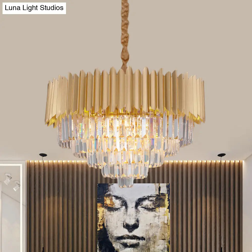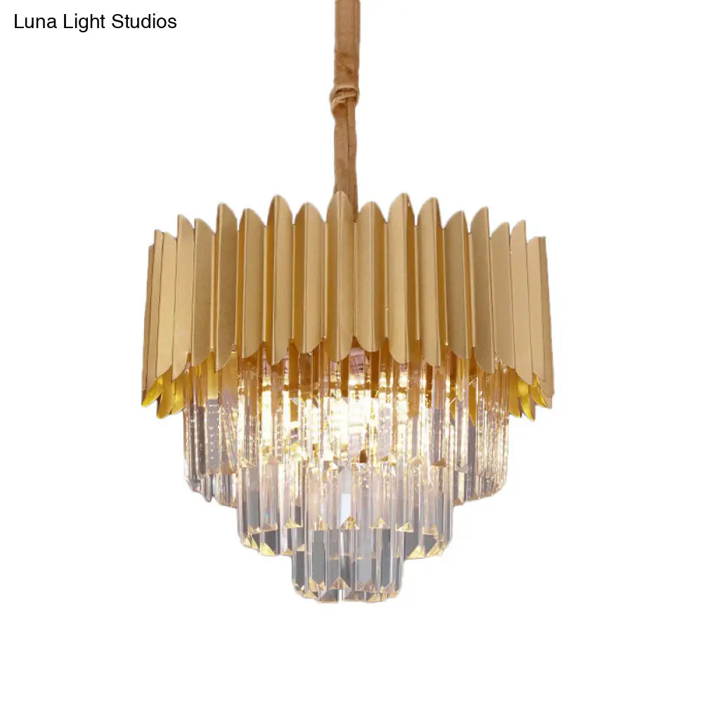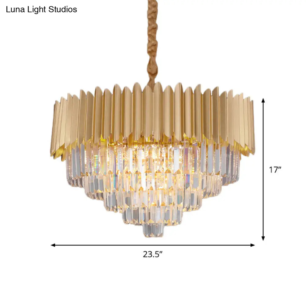 Contemporary 4/8 Bulb Crystal Rectangle Hanging Lamp in Gold – Taper Faceted Design, 16"/23.5" Width