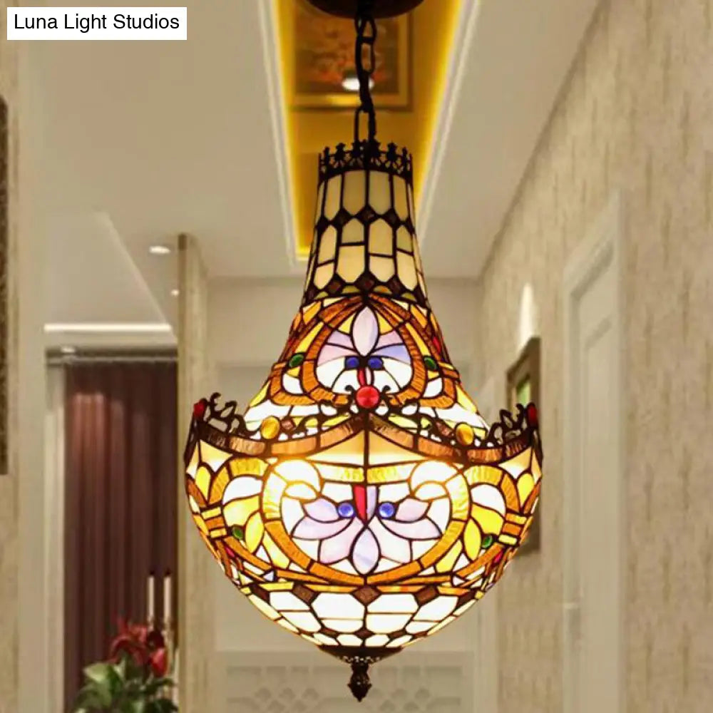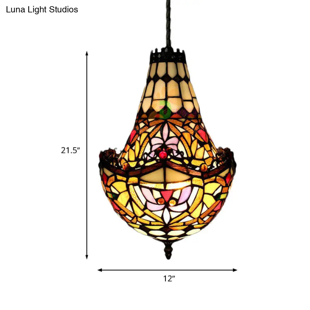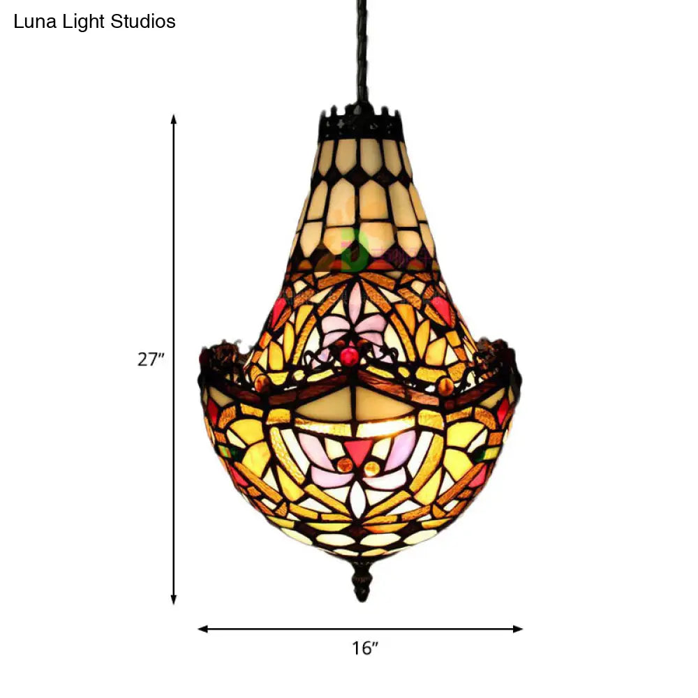 Stained Glass Flower Chandelier Lighting in Black with 2/3/5 Lights, Available in 10"/12"/16" Widths