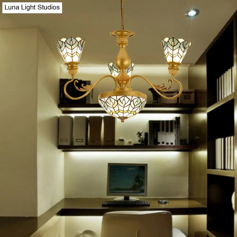 Gold Peacock Feather Chandelier with Stained Glass - 3/5/6 Lights for Living Room