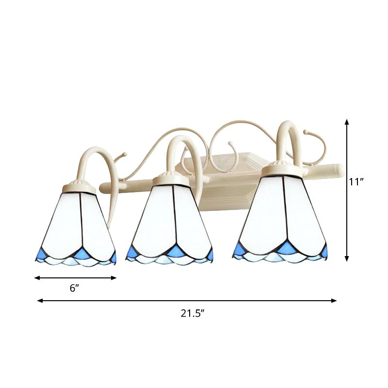 Classic Cone Wall Sconce with Curved Arm and White Glass - 2/3 Lights for Elegant Bathroom Lighting