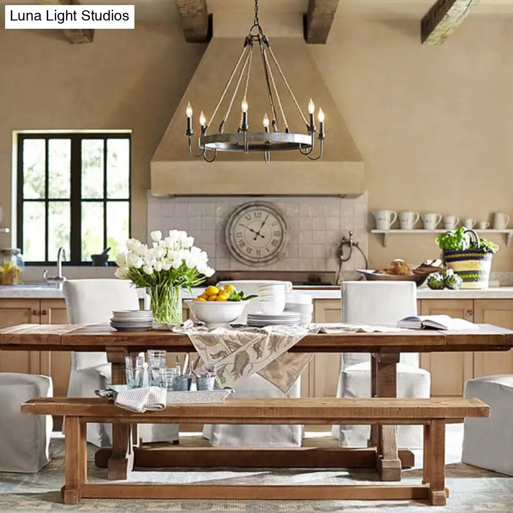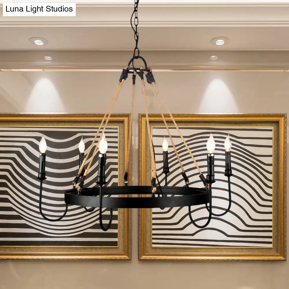 Vintage 6-Head Candle Chandelier Pendant Lamp in Black/Rust for Restaurants