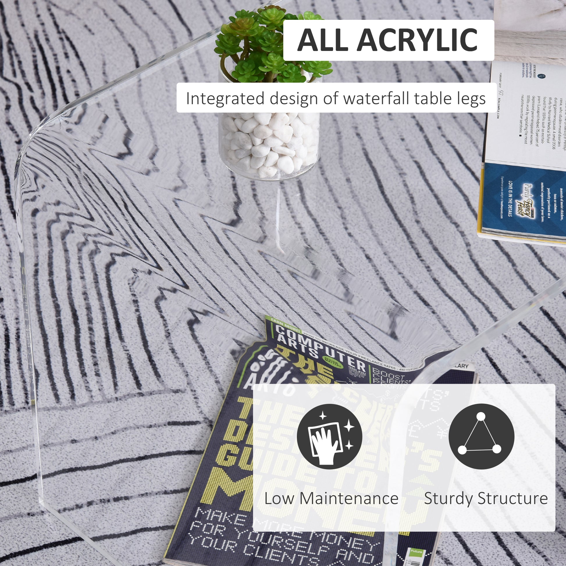 Elevate your living space with the HOMCOM acrylic side table featuring a stunning waterfall design. This sleek and modern coffee table seamlessly blends into any decor, adding a touch of sophistication. Its transparent acrylic construction creates the illusion of spaciousness by giving you a larger view of the room. Practical and stylish, it's an excellent accent piece for your home. Features: - Waterfall end table with a U-shape has an elegance that compliments any décor - Its clear color enhances the spaciousness of your room - Rounded corners and smooth edges make it a safer choice - 0.6" thickness acrylic is sturdy and quality - It can be used as a side table or a coffee table - Easy to clean with a damp cloth - No assembly required Specification: - Color: Clear - Material: Acrylic - Overall Dimensions: 32"L x 16"W x 16"H - Acrylic Thickness: 0.6" D - Overall Weight Capacity: 110 lbs. - Item Label: 833-673 Package Includes: - 1 x Acrylic Table - 1 x Manual Elevate your living space with the HOMCOM acrylic side table featuring a stunning waterfall design. Features: - Waterfall end table with a U-shape has an elegance that compliments any décor - Its clear color enhances the spaciousness of your room - Rounded corners and smooth edges make it a safer choice - 0.6" thickness acrylic is sturdy and quality - It can be used as a side table or a coffee table - Easy to clean with a damp cloth - No assembly required Specification: - Color: Clear - Material: Acrylic - Overall Dimensions: 39.4"L x 16"W x 15.9"H - Acrylic Thickness: 0.6" D - Overall Weight Capacity: 110 lbs. - Item Label: 833-673V01CR Package Includes: - 1 x Acrylic Table - 1 x Manual.