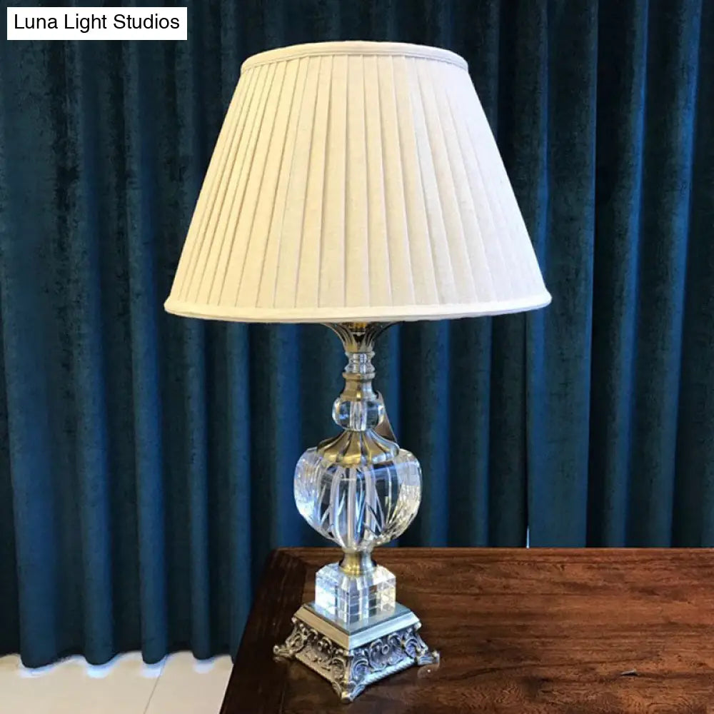 Countryside Crystal Nightstand Lamp in Cream Gray with Fabric Empire Shade - 1 Light