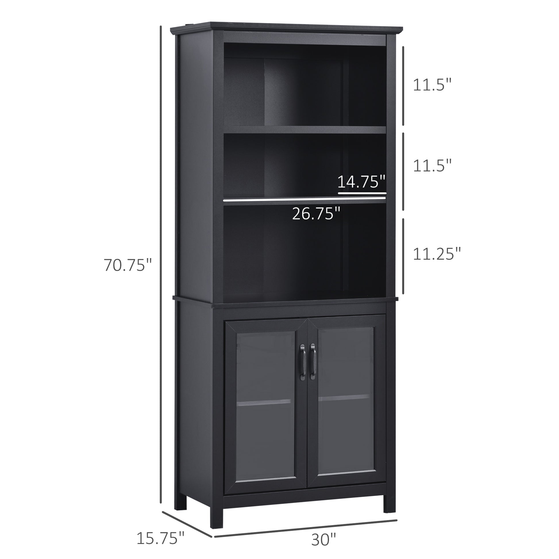 71" Bookcase Storage Hutch Cabinet with Adjustable Shelves and Doors for Home Office