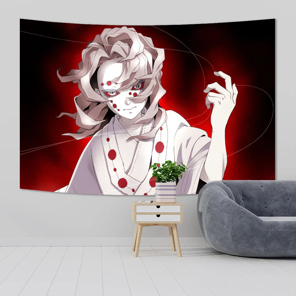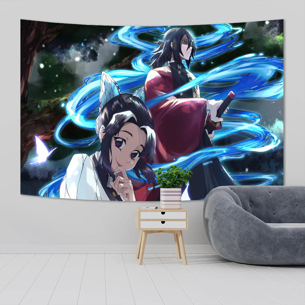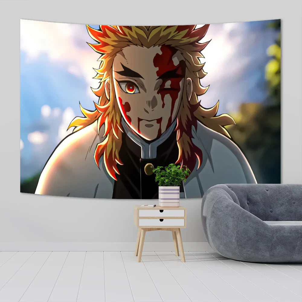 Indulge in the intricate details of this mesmerizing tapestry, featuring vibrant colors and striking imagery that will transport you to a world of demons and demon slayers. The quality craftsmanship ensures durability, making it a lasting addition to your decor.