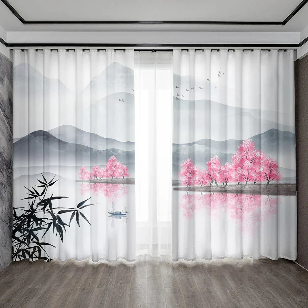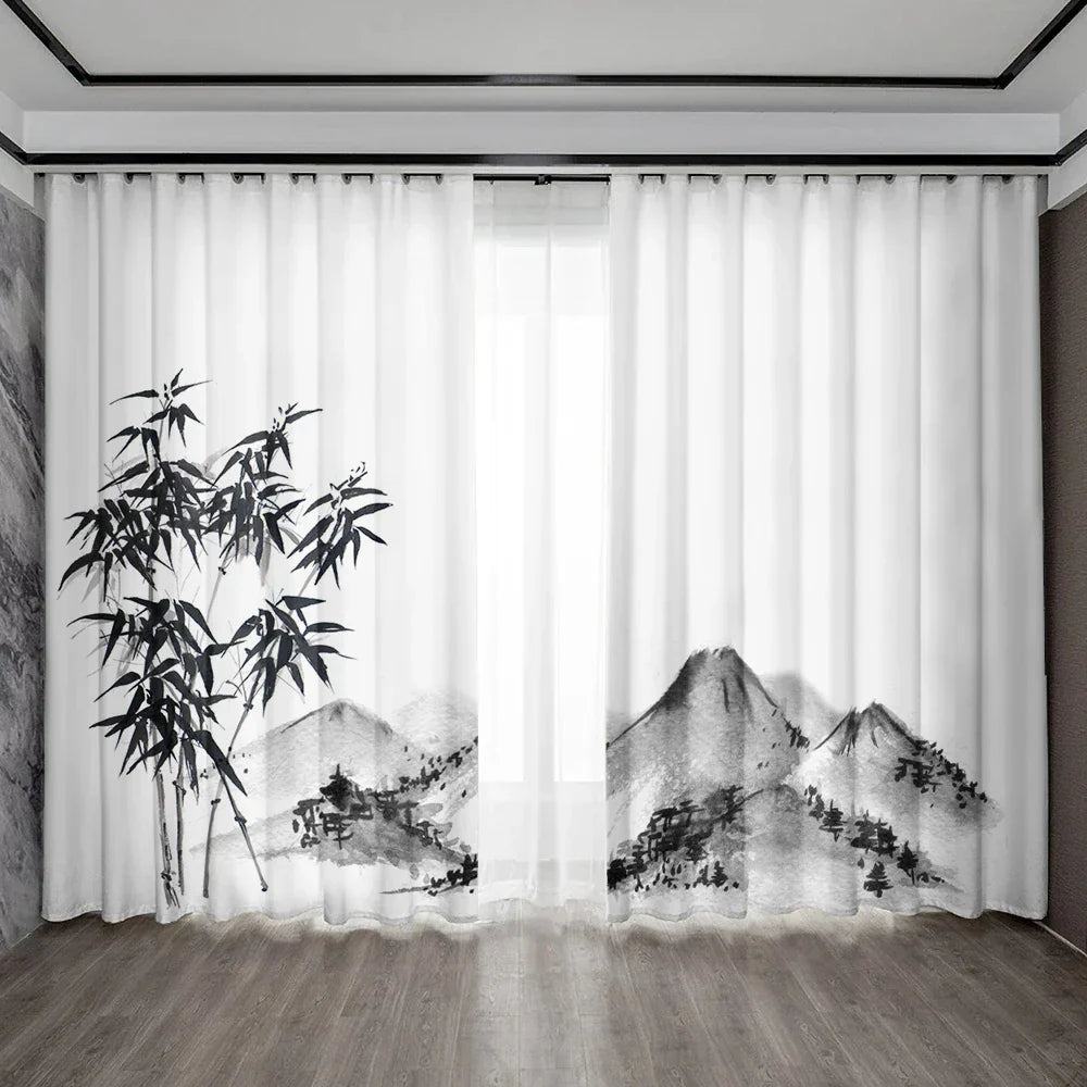DecorBites™ Bamboo Ink Painting Curtains for Home Decoration Elegant Finish