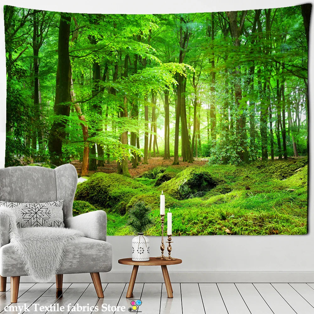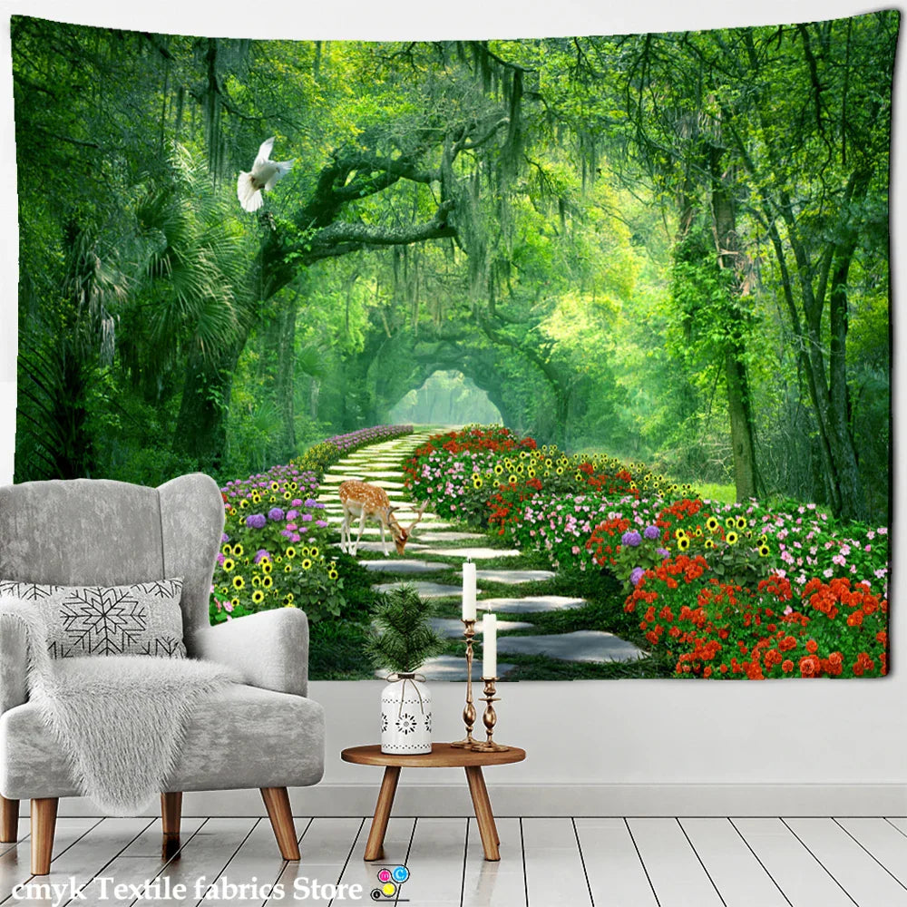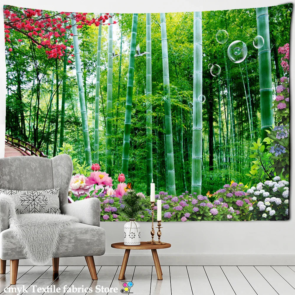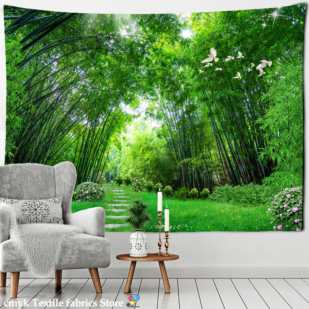 DecorBites™ Bamboo Forest Pigeon Path Tapestry: Hippie Psychedelic Wall Hanging for Natural Home Decor