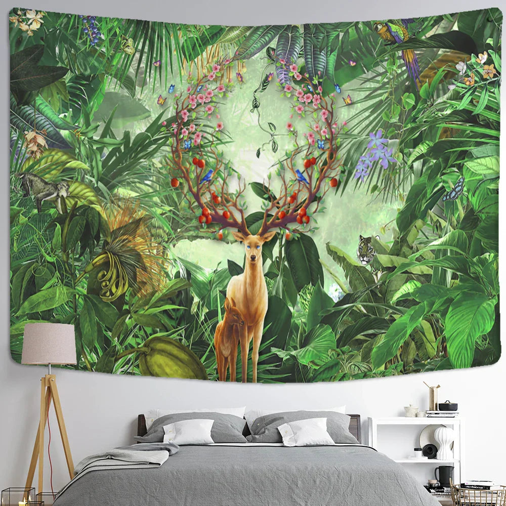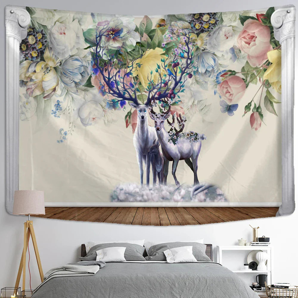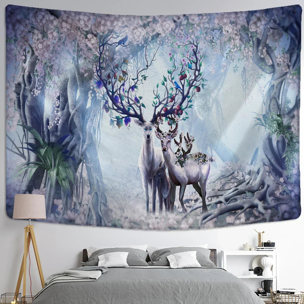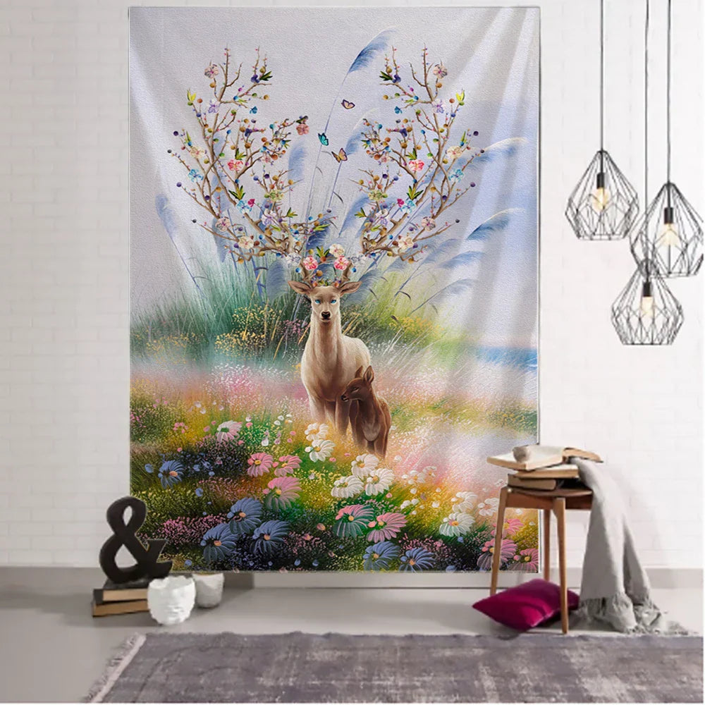 Ideal for those who appreciate the art of storytelling through home decor, this tapestry is a versatile piece that can be easily incorporated into any room. Whether you hang it above your bed as a statement headboard or use it as a backdrop for your meditation corner, the Elk Tapestry Wall Hanging is sure to inspire awe and wonder in all who behold it.