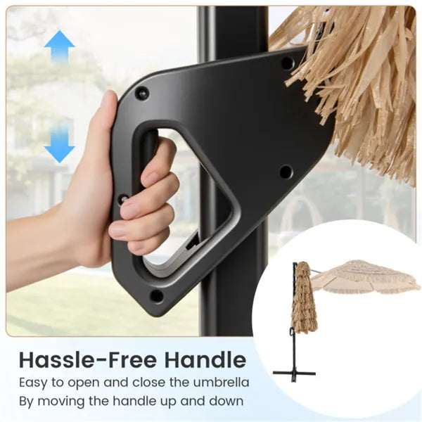 9.5ft Tropical-Style Outdoor Umbrella (Natural+Black) - 2-Tier Vented, Sun Protection, Backyard/Poolside Decor