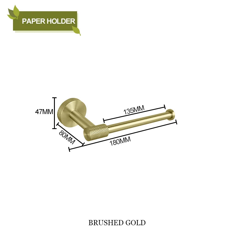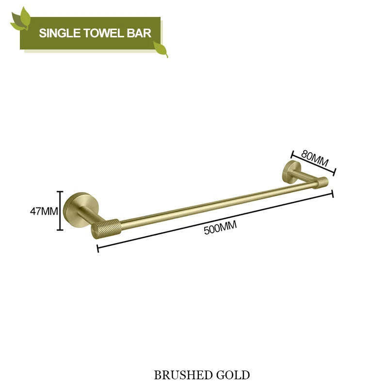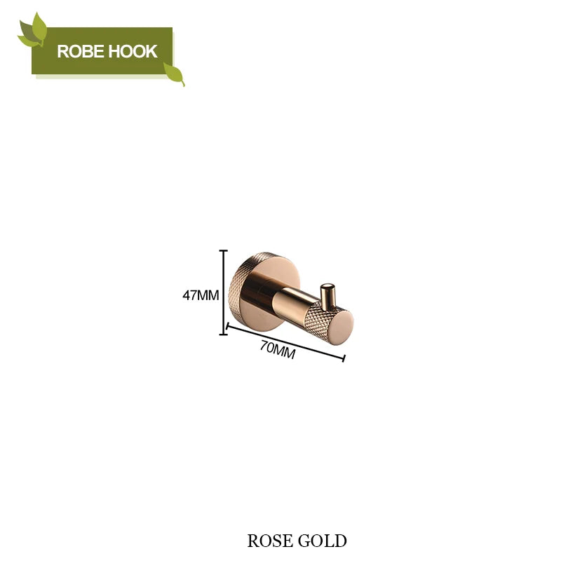 The set includes a Rose Gold Chrome Hook, a Brushed Gold Towel Rack, and a Stainless Steel Toilet Paper Holder, all designed to enhance the functionality and style of your space. The Main Material of this set is durable metal, ensuring long-lasting quality and durability.