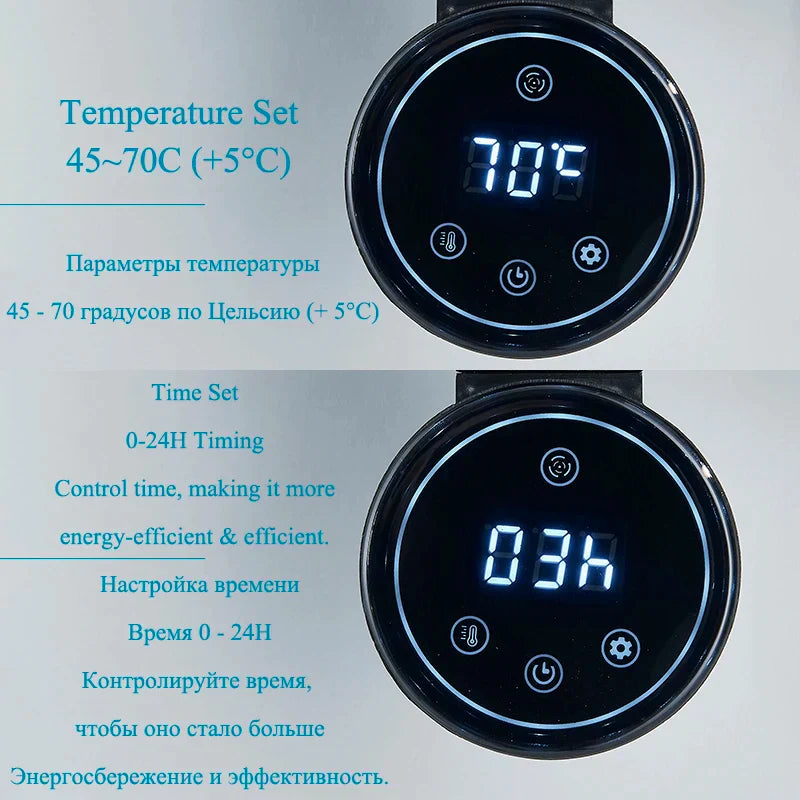 Our towel warmer boasts a power of 55W, efficiently heating your towels to a comfortable temperature range of 45~70°C(±5°C). Say goodbye to damp, cold towels and hello to a spa-like experience in the comfort of your own home.