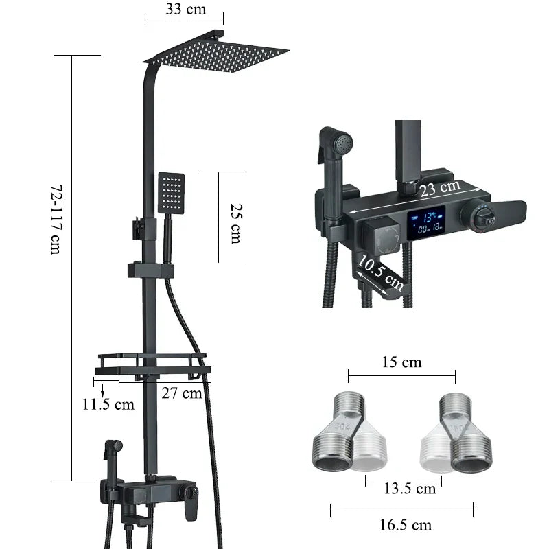 Experience ultimate convenience with the temperature digital display, which provides real-time water temperature information. The 8-inch, 10-inch, or 12-inch faucet head size offers a luxurious showering experience, while the adjustable height of 72cm to 117cm caters to your specific needs.