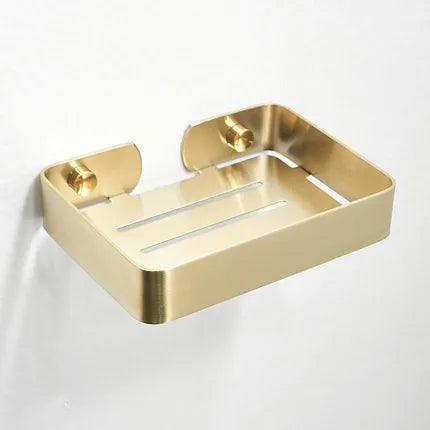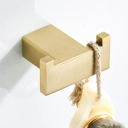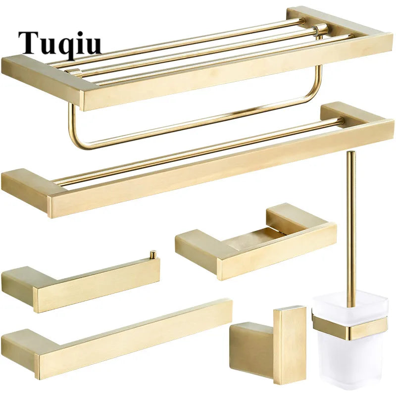 DecorBites™ Bath Set: Towel Rack, Corner Shelf, Paper Holder, Mixer Faucet - Brushed Matt Gold