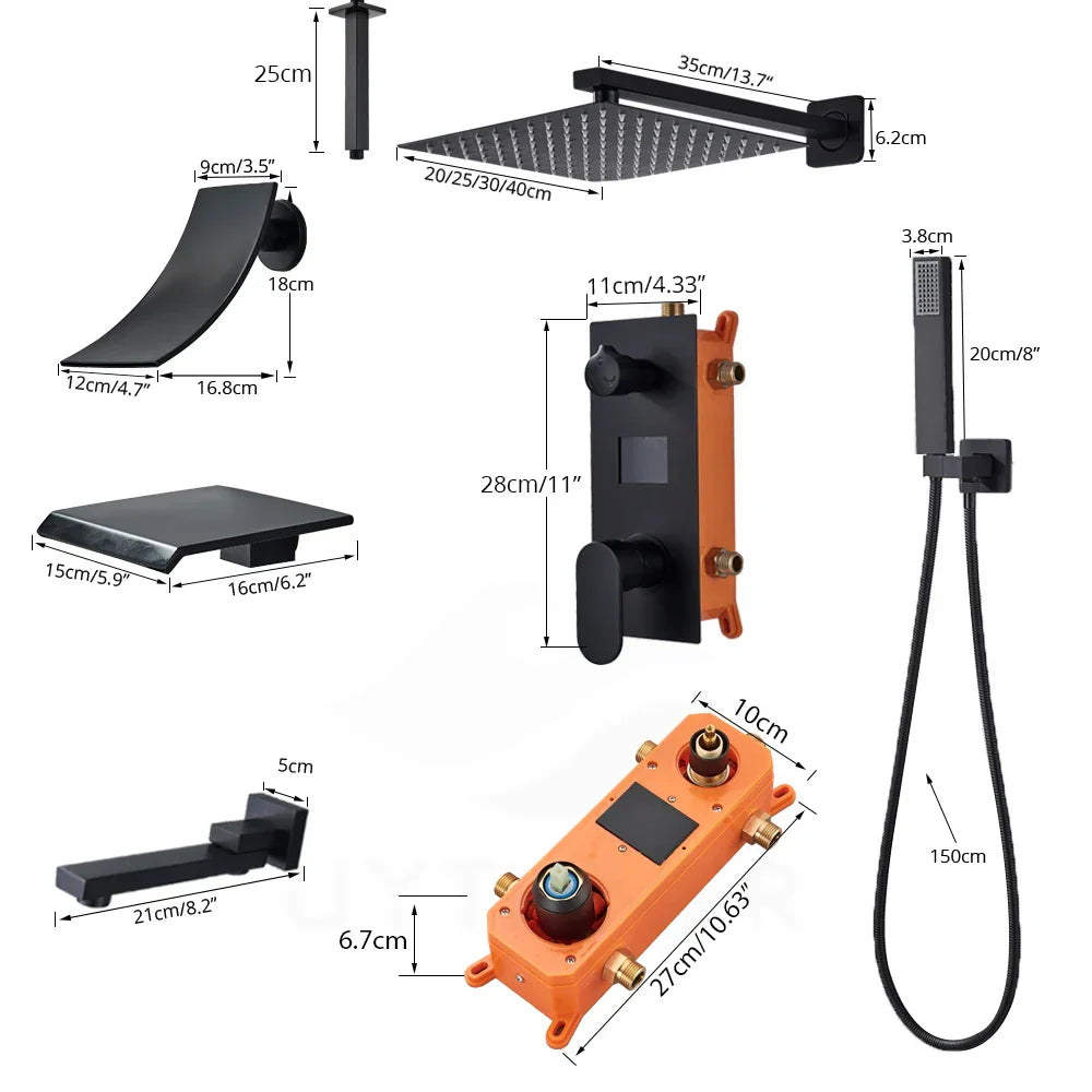 DecorBites™ Digital Display Shower Faucet Set with Rainfall Head and Bathtub Spout