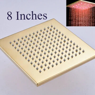 DecorBites™ Gold LED Square Rainfall Shower Head for Bathroom Faucet - Top Sprayer