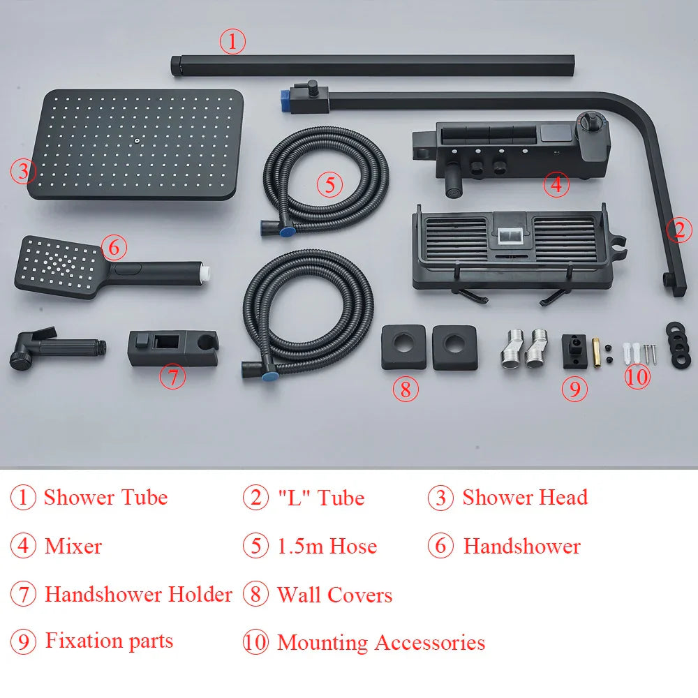 DecorBites™ Digital Display Shower Faucet Rainfall Head Thermostatic Mixer Set