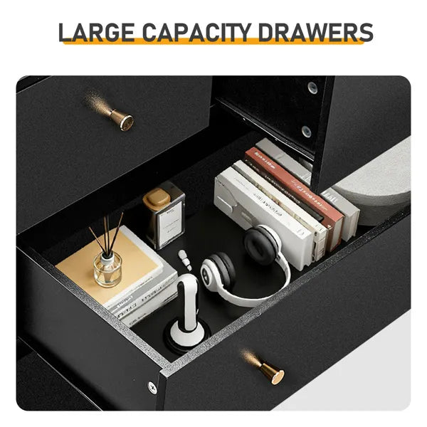 Black Matte Finish Particleboard With Melamine Veneer, 66*40*111cm, 4+2 Drawer Cabinet, Matte Gold Handles