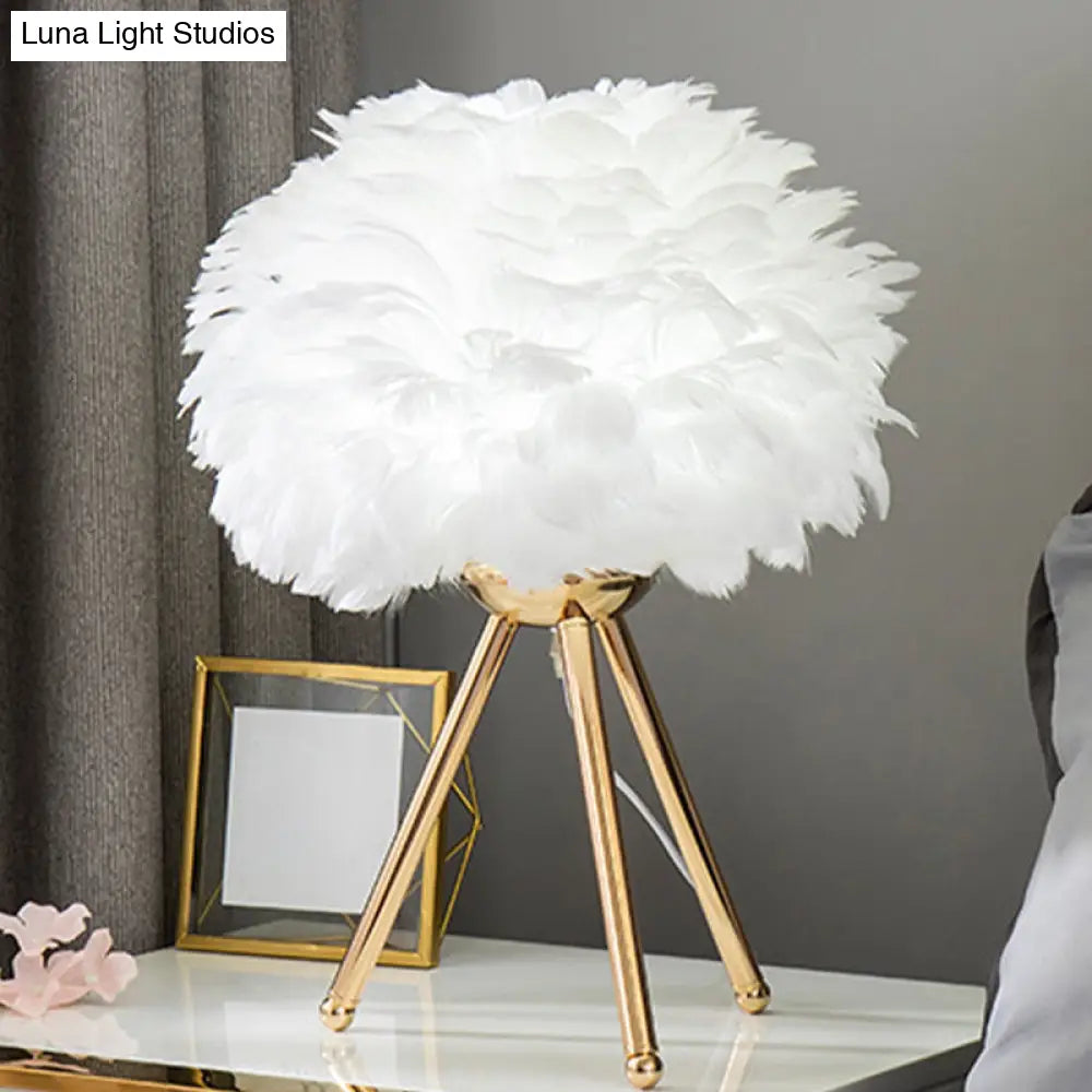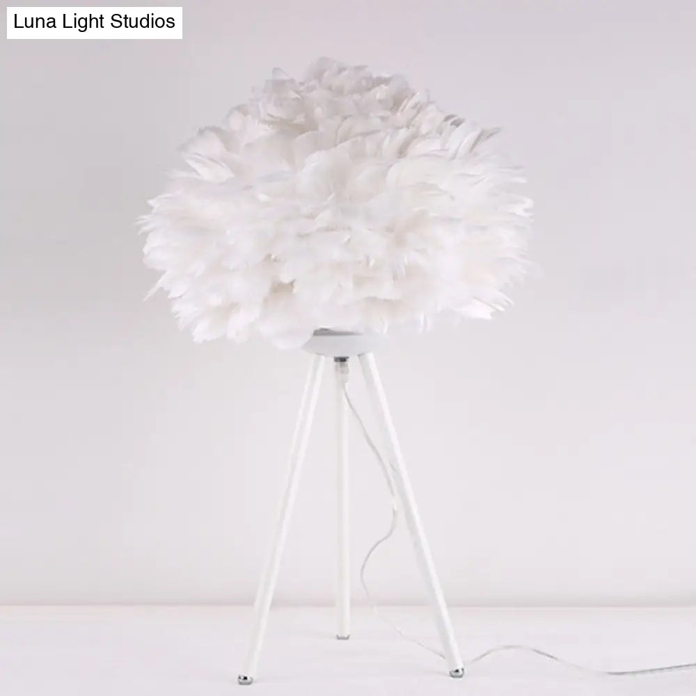 Bloom Nordic Feather Nightstand Lamp - Single White/Pink Table Light with Tripod for Bedroom