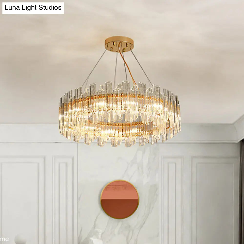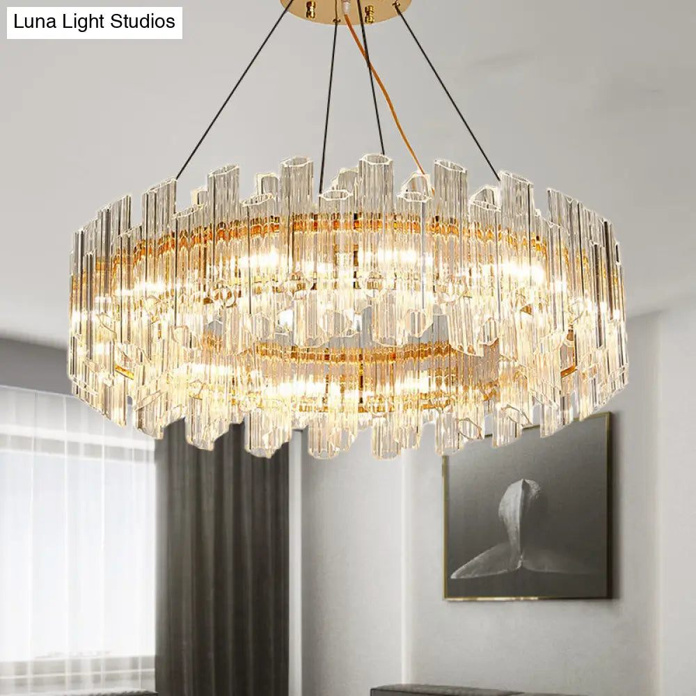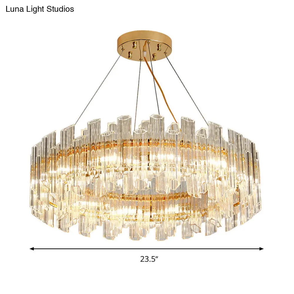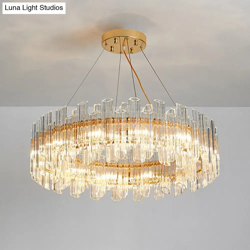 Modern Clear Crystal Drum Chandelier - Elegant 8/12 Light Gold LED Ceiling Lamp - Ideal for Living Room Styling