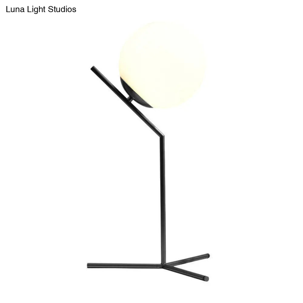 Contemporary Milk Glass Nightstand Lamp with 1 Head Reading Book Light - Black/Gold Accent