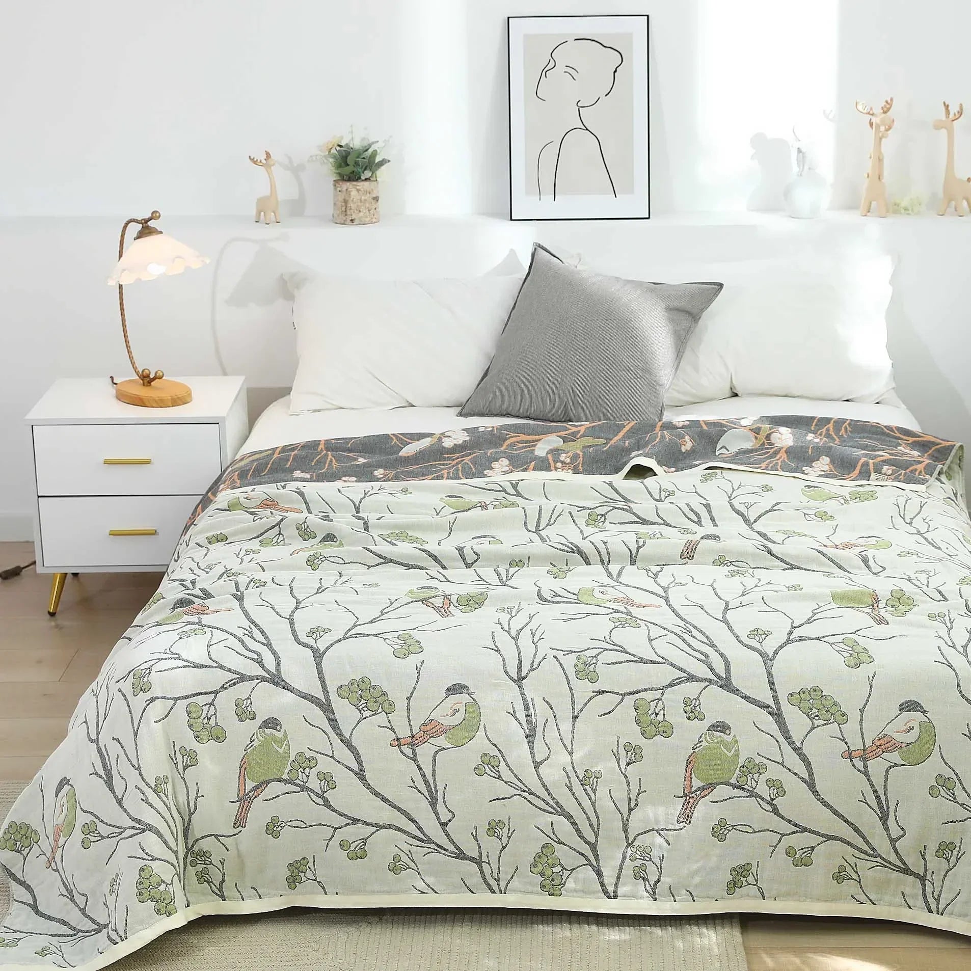 DecorBites™ 100% Cotton Gauze Summer Blanket - Soft Floral Throws for Sofa and Bed