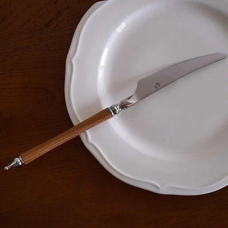 DecorBites™ 5-Piece Stainless Steel Western Tableware Set, Solid Wood Handle, Natural Yellow