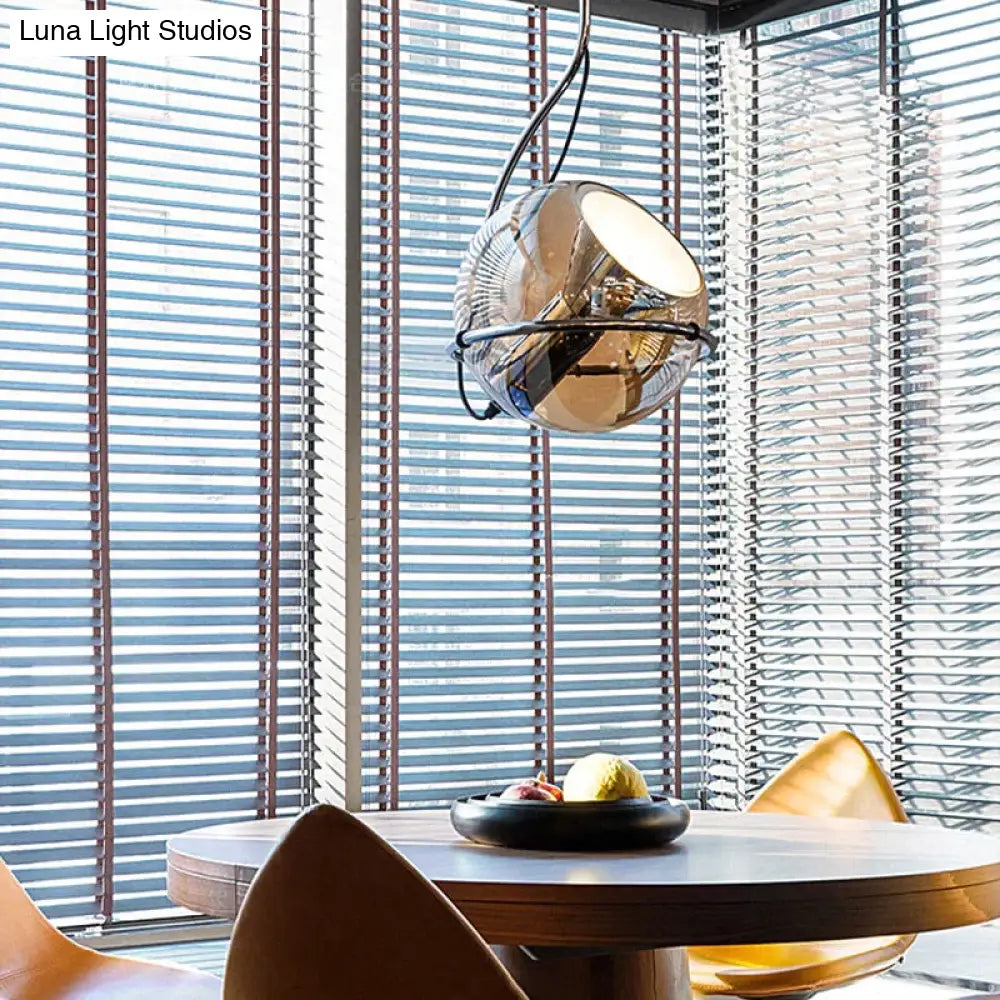 DecorBites™ Amber Glass Pendant Light Ball Industrial Hanging Lamp E27 Plating Adjustable Chandelier for Kitchen Island Bedroom Hallway