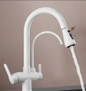 Introducing our exquisite Decorbites Antique Brass 2-in-1 Kitchen Faucet with Pull Out Nozzle and Purification. Crafted with the finest materials and exceptional attention to detail, this faucet is a perfect blend of functionality and sophistication.