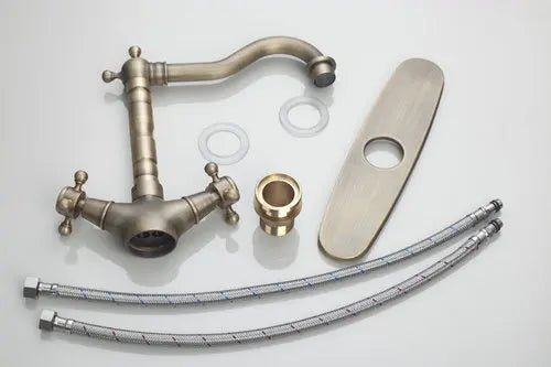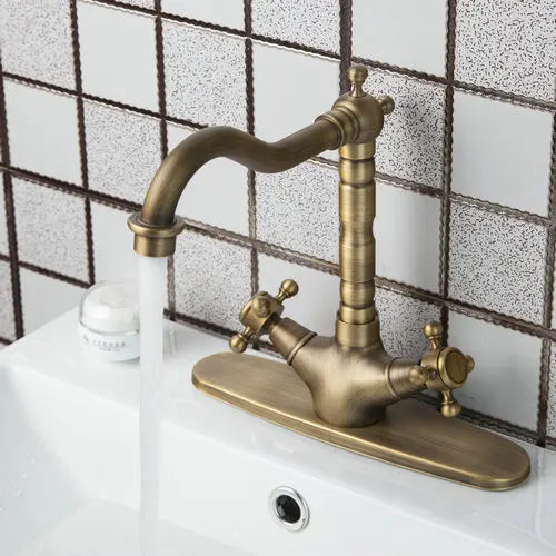 Crafted from high-quality brass with an antique brass finish, this faucet not only adds a touch of elegance to your kitchen but also ensures long-lasting durability. The dual handles allow for easy control of water temperature and flow, while the swivel basin design adds convenience and flexibility to your daily tasks.
