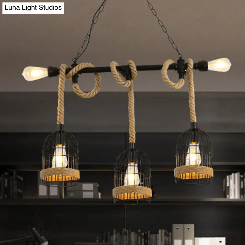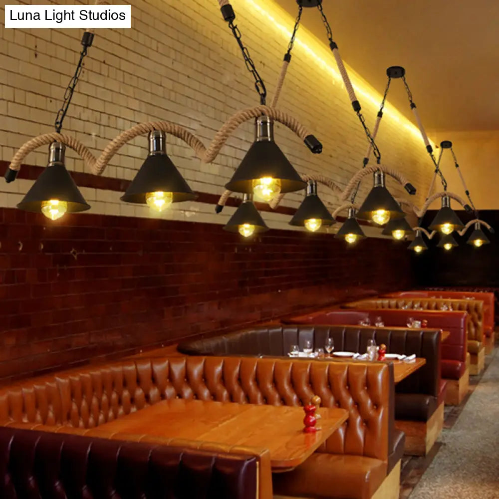 DecorBites™ Antique Iron Hanging Island Light with Hemp Rope in Black