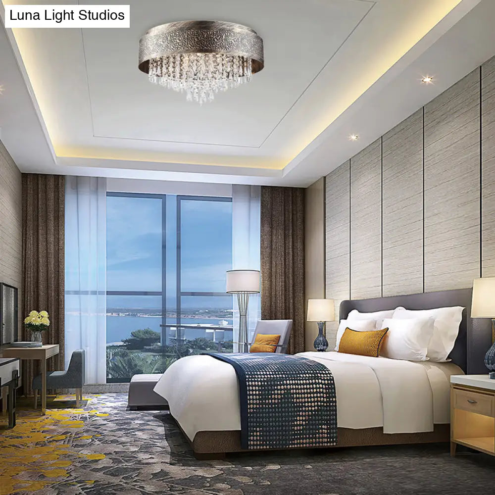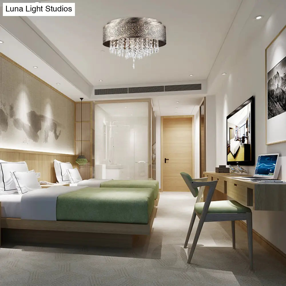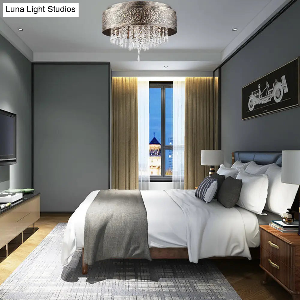 DecorBites™ Antique Style Bronze Drum Flush Lamp with Crystal Accent, 5/9 Light Iron Flush Mount Ceiling Light - 16"/19.5" Width