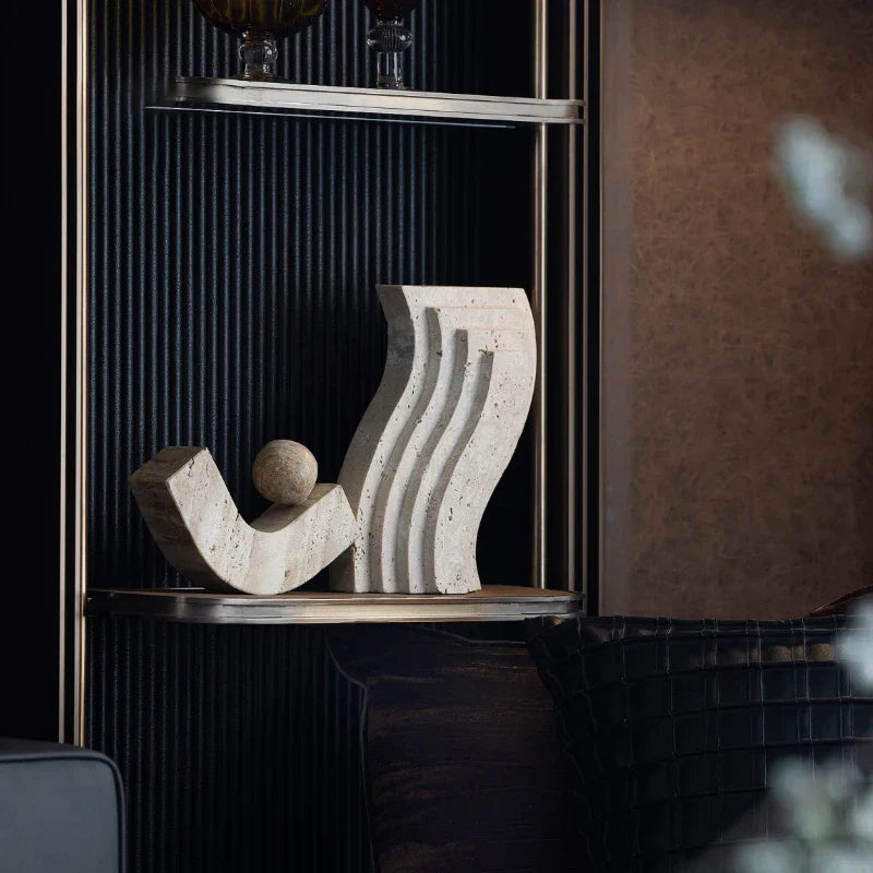 Designed for those who appreciate natural materials, this sculpture is made from travertine, a hign-concerned chemical-free stone that exudes a sense of luxury. Its natural origins give it a timeless appeal that blends seamlessly with any decor style.