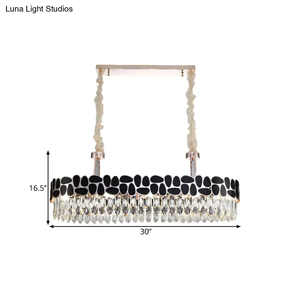 DecorBites™ Black 8-Head Island Lamp with Modern Clear Crystal Prisms - Oval Island Light Fixture