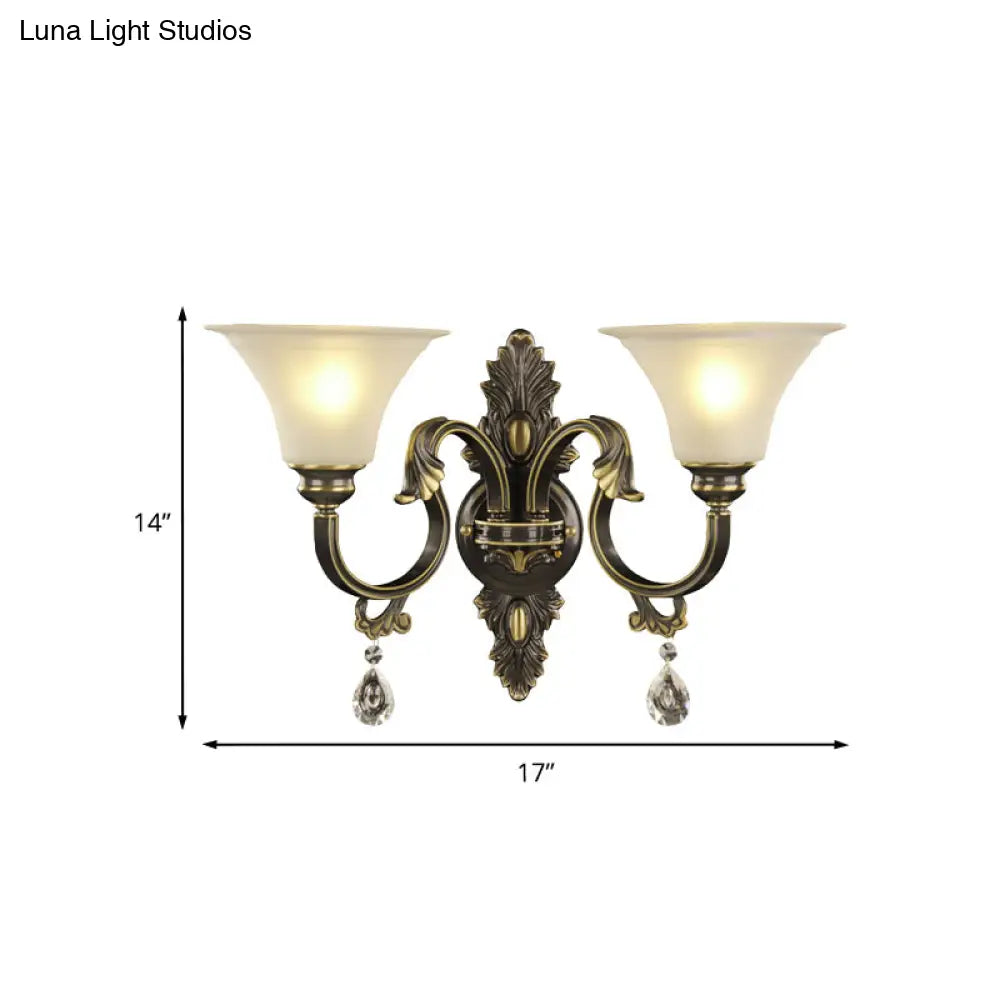 DecorBites™ Black and Gold Crystal Raindrop Bell Shade Wall Sconce Light Fixture with 2-Bulb Mount