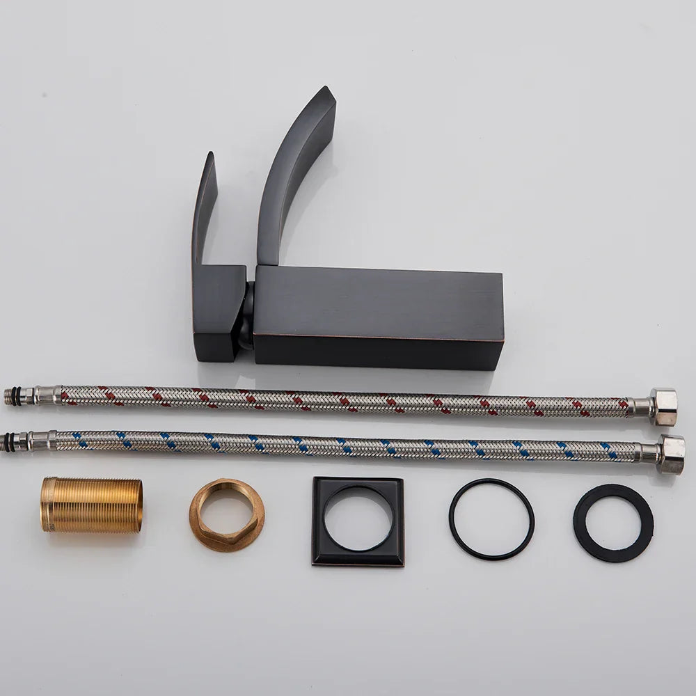 Complete with a large rectangular spout, this basin mixer faucet delivers a powerful and luxurious waterfall flow of water, creating a spa-like experience in your own home. The faucet comes with a 40cm hot and cold water pipe, as well as all necessary accessories for easy installation.