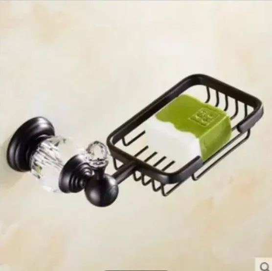 DecorBites™ Black Brass & Crystal Bathroom Accessories Set - Towel Rack, Towel Bar, Paper Holder, Soap Dish, Cup Holder, Toilet JM251