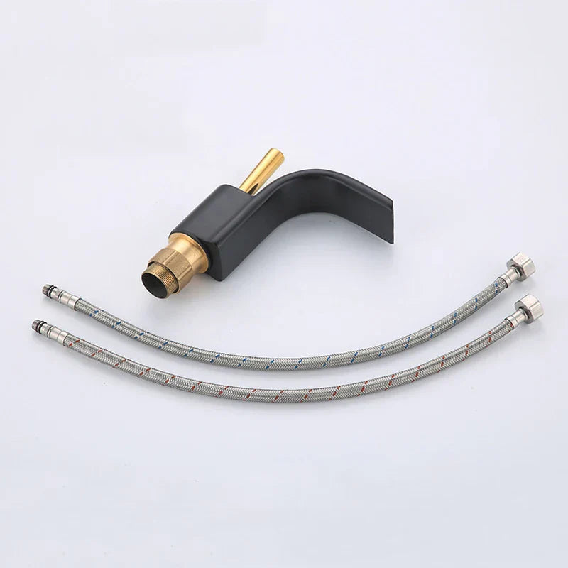 DecorBites™ Black Brass Waterfall Basin Faucet, Single Hole Hot Cold Sink Mixer Tap